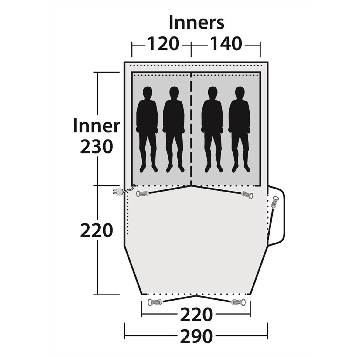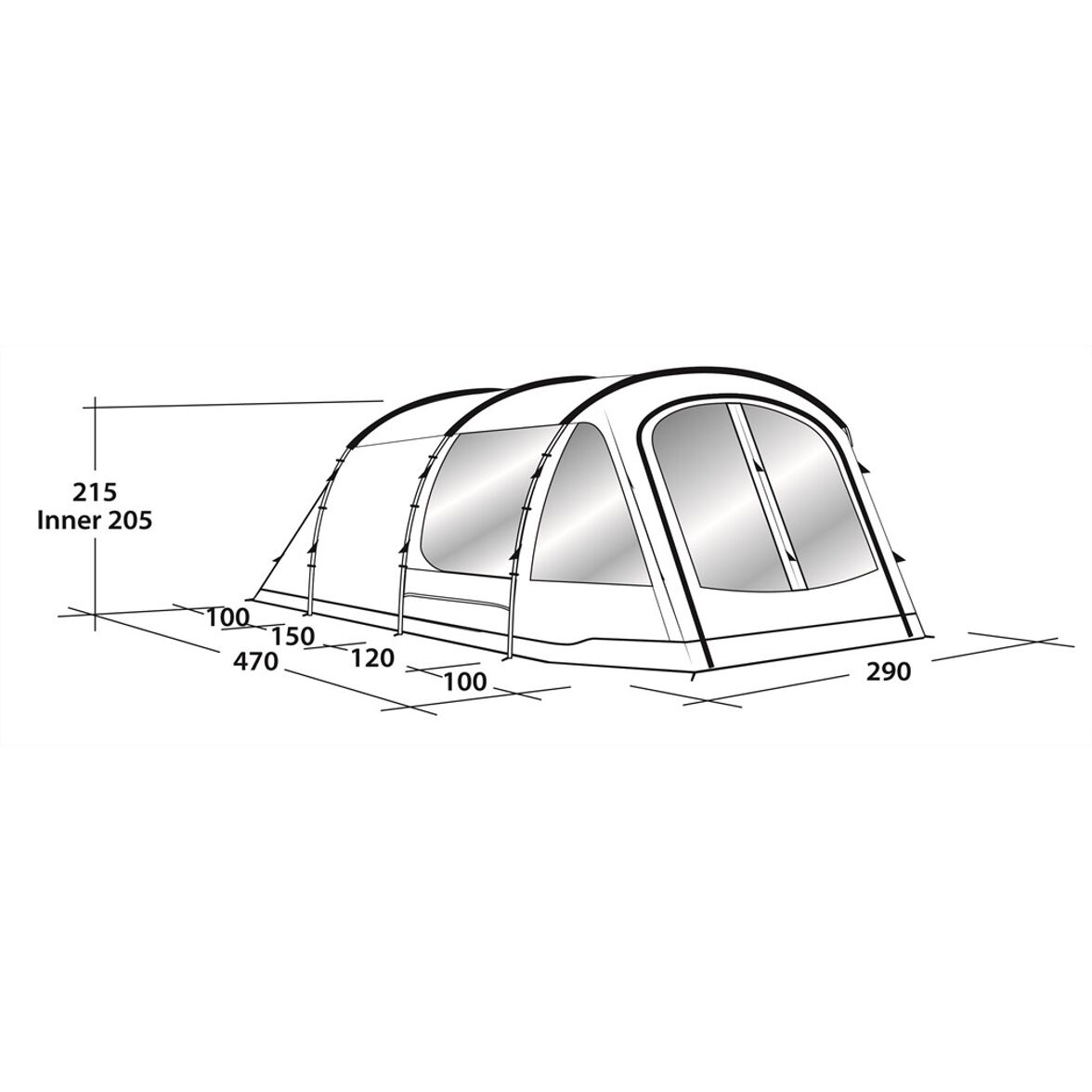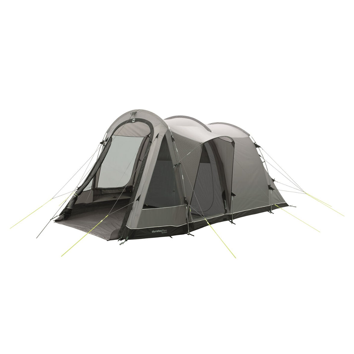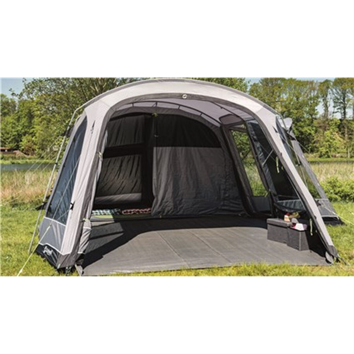 Der Boden ist vollständig an die Zeltplane versiegelt, was vor Kältezug, Feuchtigkeit und Insekten schützt. Dies zusammen mit den großen getönten Panoramafenstern, den extra geräumigen Schlafzimmern mit niedrigem Lichtdurchlass und dem regengeschützten Eingang bietet ein Familienzelt, das sowohl angenehm als auch komfortabel zu bewohnen ist.