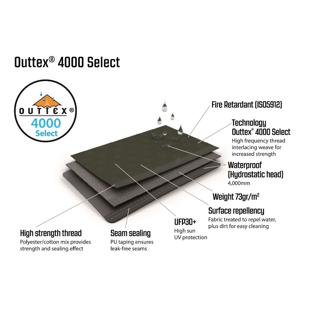| Zeltstoff | Outtex® 4000 Select (100% polyester taffeta) med tejpade sömmar |