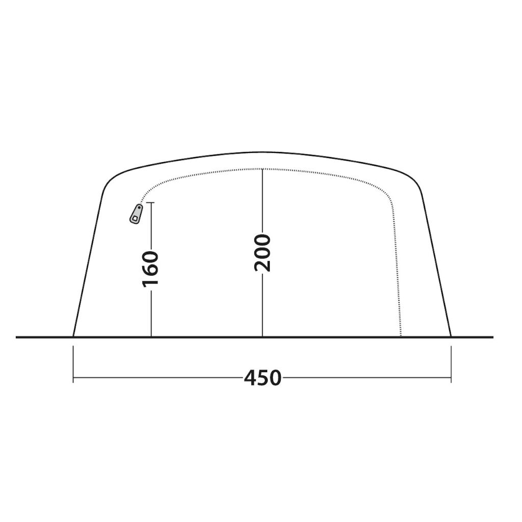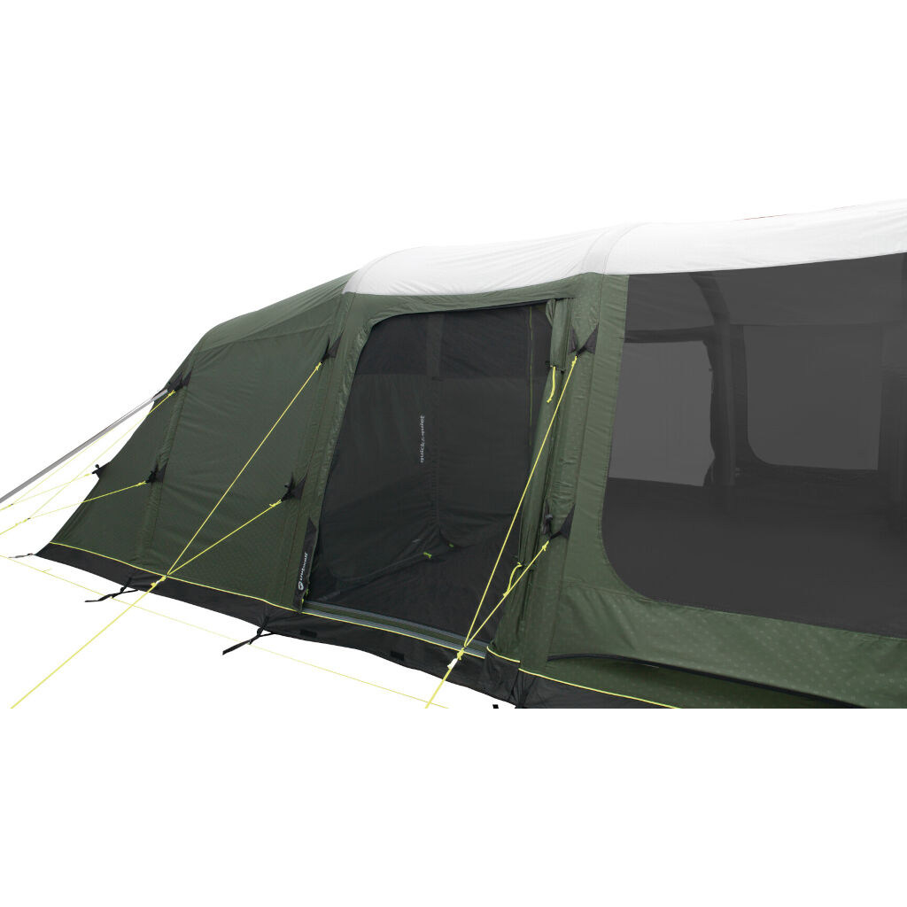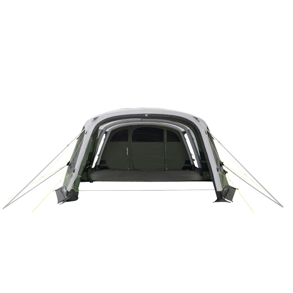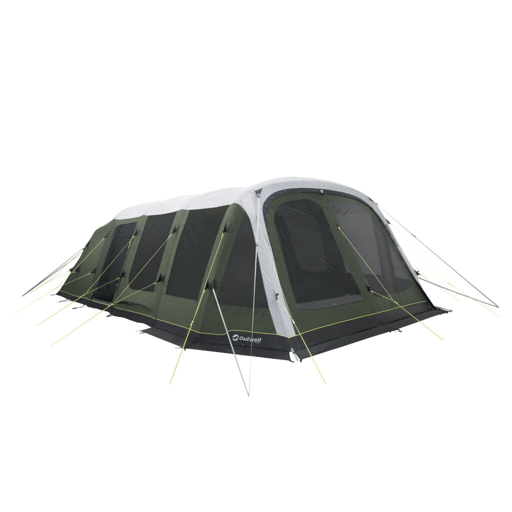Großes 8-Personen-Familienzelt von der dänischen Marke Outwell, das Luftkanäle anstelle von herkömmlichen Stangen verwendet. Das Zelt verfügt über insgesamt vier Schlafräume, ein großes, helles Wohnzimmer sowie einen zusätzlichen Raum an der Vorderseite. Der zusätzliche Raum vorne ist ohne Boden und kann geöffnet werden, um als geschützter Außenbereich oder als Stauraum für Ausrüstung wie Fahrräder oder Kinderwagen genutzt zu werden. Perfekt für die größere Familie, die Familie mit älteren Kindern, die eigene Schlafzimmer möchten, oder für diejenigen, die einfach ein wirklich geräumiges Campingzelt wünschen.