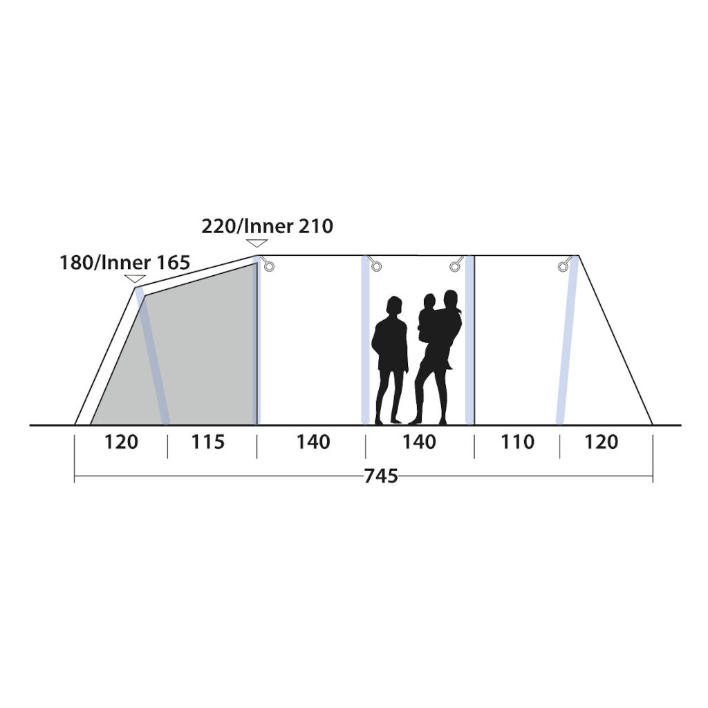 Das Outwell Queensdale 8PA ist ein Familienzelt, das für Familien oder Gruppen von bis zu acht Personen aufgeteilt auf 4 Schlafzimmer ausgelegt ist. Für zusätzlichen Komfort empfehlen wir es auch für bis zu 5 Personen, da die kleine Schlafkabine vorne abgebaut werden kann, um zusätzlichen Platz im vorderen Wohnbereich zu schaffen und mehr Raum in den hinteren Schlafzimmern zu gewinnen. Das Zelt basiert auf drei Zonen, einem Prinzip, das in England üblich ist und als Außenbereich, Innenbereich und Schlafzimmer bezeichnet wird.