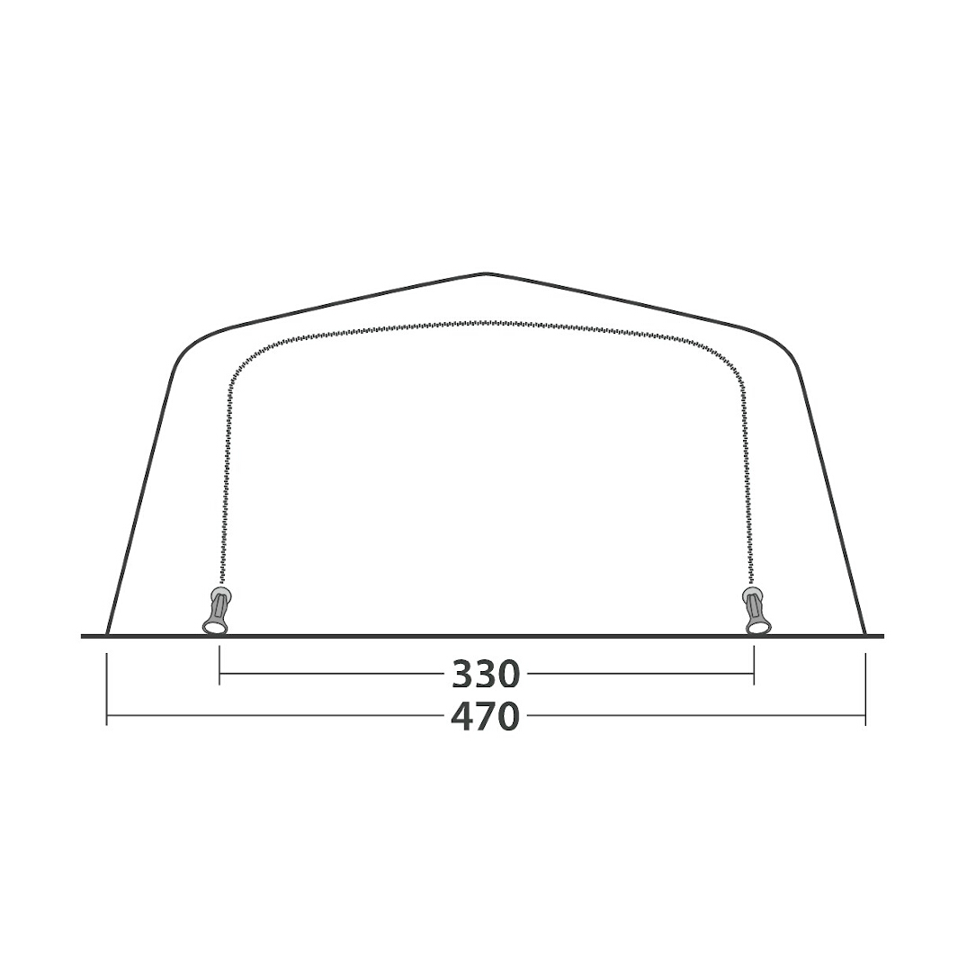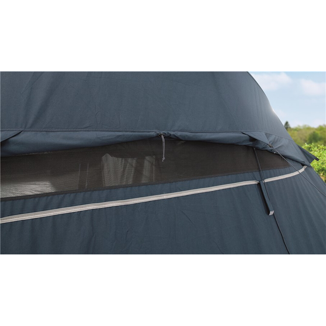 - Verstärkungen an exponierten Stellen des Stoffes sowie der Outwell Wind Stabilizer sorgen dafür, dass das Zelt extremen Windstärken von bis zu 28 m/s standhält