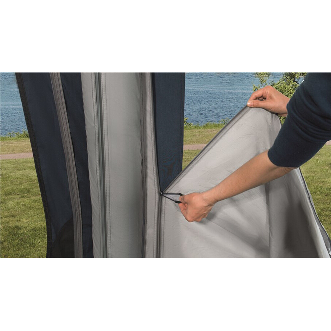 - Outwell Quick & Quiet Inner doors - Die große Schlafzimmertür sowie die Tür zwischen Aufenthaltsraum und Außenraum haben neben dem Reißverschluss eine Magnetleiste, sodass sie ohne Reißverschluss geöffnet und geschlossen werden können