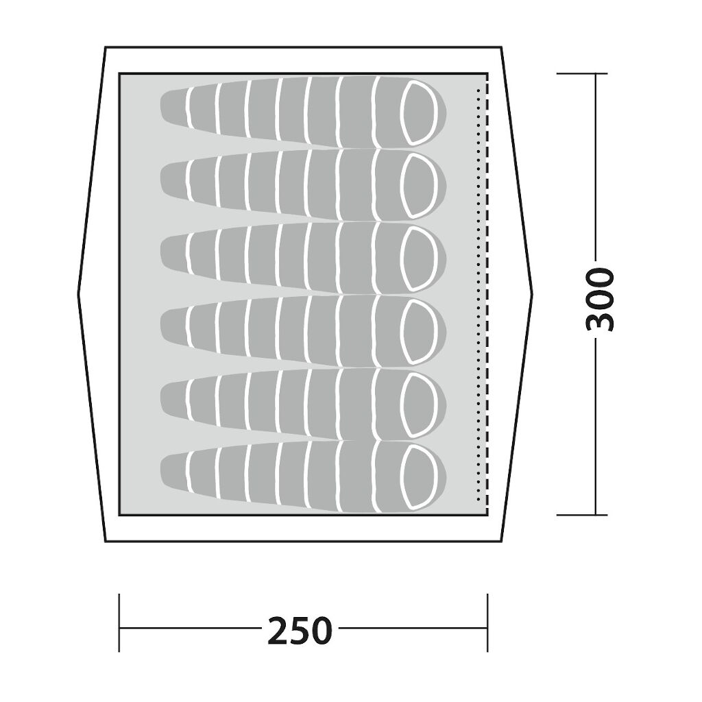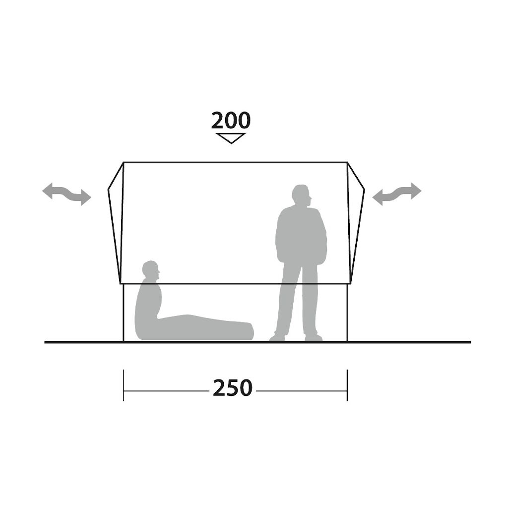 Durch die Verwendung des als Zubehör erhältlichen Tarps können zwei Zelte miteinander verbunden werden, um einen geschützten Durchgang zwischen den Zelten zu schaffen.