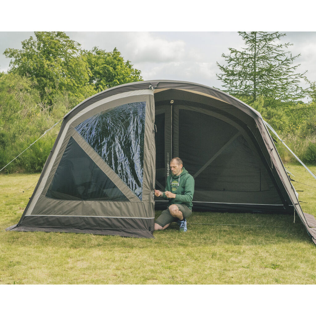 - Outwell Quick & Quiet Türen - Das große Schlafzimmer und die Tür zwischen Wohnraum und Außenraum verfügen über Magnetstreifen für ein lautloses Öffnen und Schließen ohne Reißverschluss