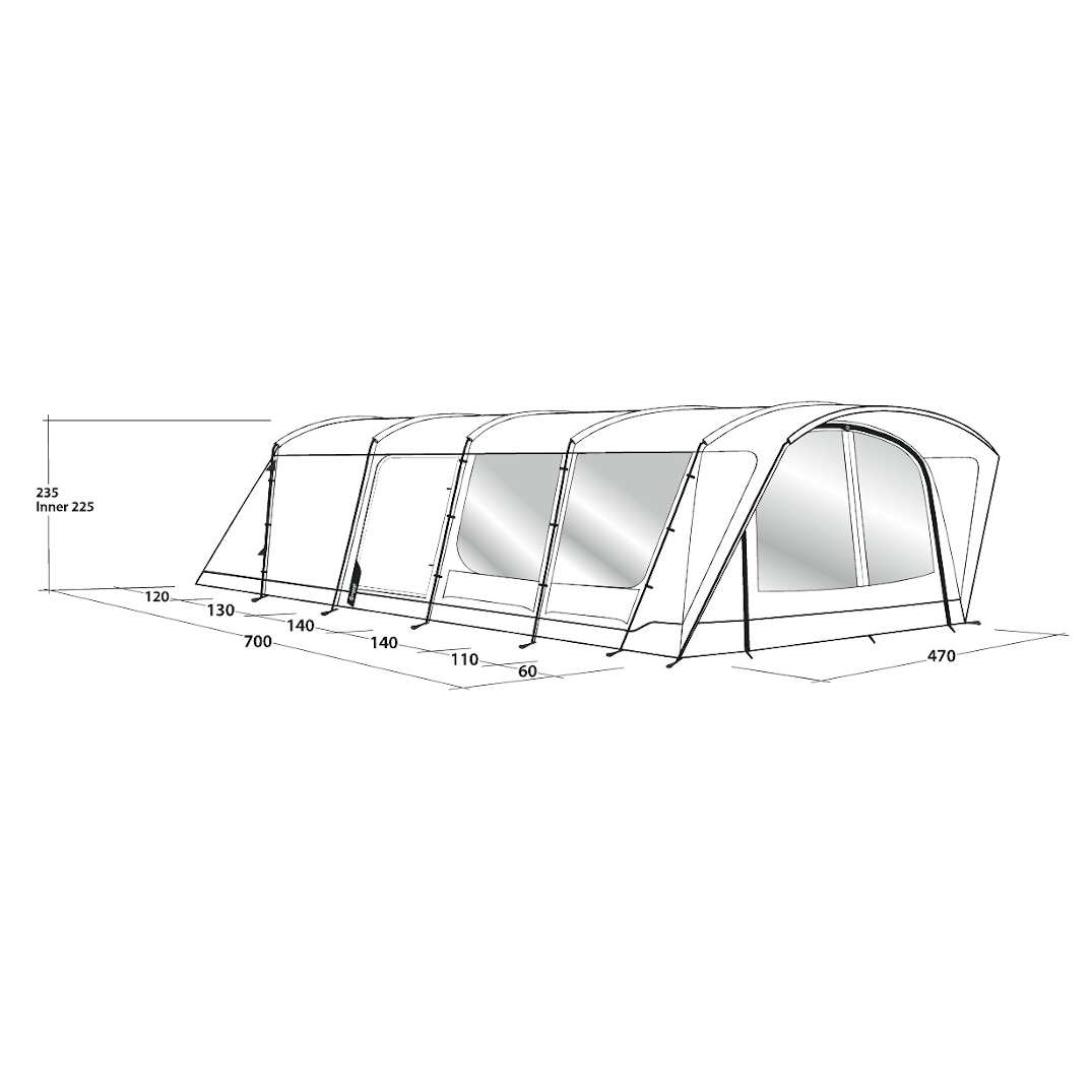 Das Zelt basiert auf drei Zonen. Ein Prinzip, das in England üblich ist und als Außenraum, Innenraum und Schlafzimmer bezeichnet wird. Der Außenraum mit abnehmbarem Boden kann entweder als Essbereich oder zum Aufhängen nasser Kleidung und zur Aufbewahrung von Ausrüstung genutzt werden. Die nächste Zone ist das gewöhnliche Wohnzimmer mit einem vollständig versiegelten Boden, in dem man Teppiche auslegen und Möbel für geselliges Beisammensein an Abenden oder regnerischen Tagen aufstellen kann, wenn man nicht zu oft in das Zelt hinein- und hinausgehen möchte. Die letzte Zone sind dann die Schlafzimmer, die aus drei Schlafzimmern bestehen.