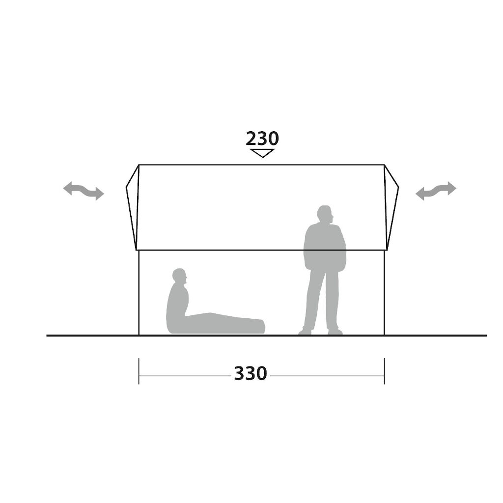 Durch die Verwendung der als Zubehör erhältlichen Plane können zwei Zelte miteinander verbunden werden, um einen geschützten Durchgang zwischen den Zelten zu schaffen.