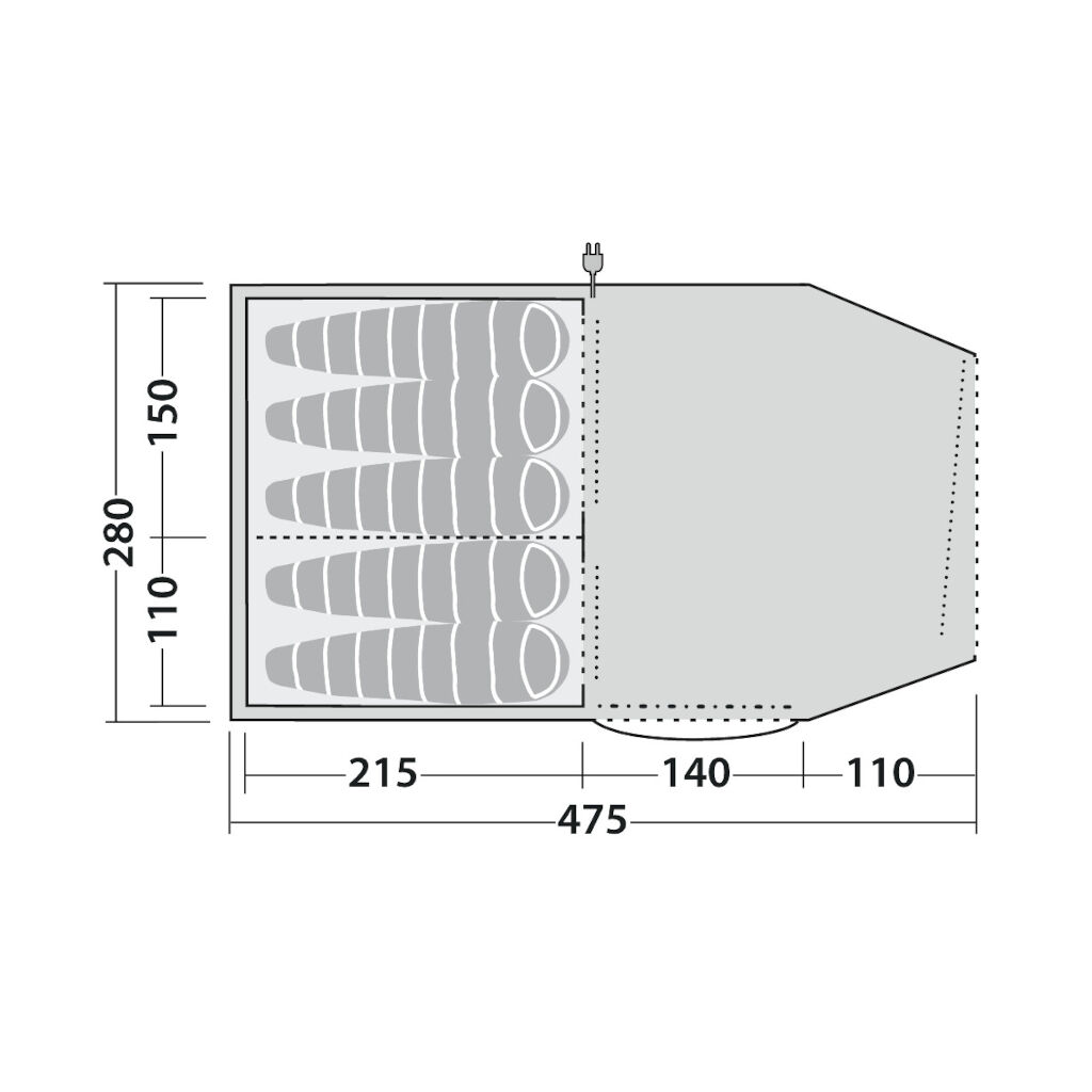 - Die Trennwand im Innenzelt kann entfernt werden, um die gesamte Gruppe in einem Raum zu versammeln