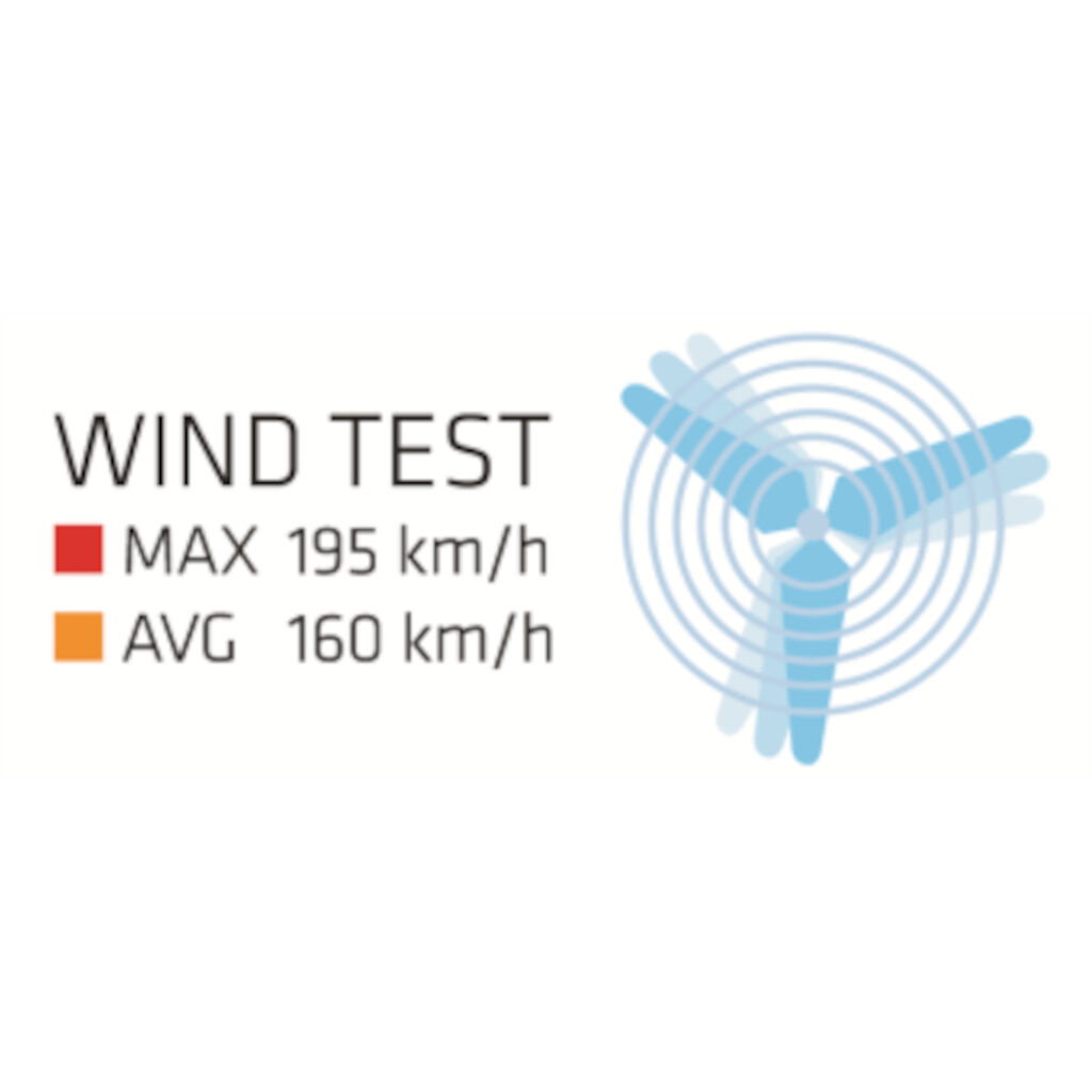 - Sehr stabil: getestet bis zu Winden von 195 km/h