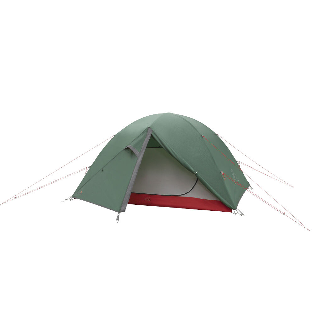 Selbststehendes 3-Personen-Kuppelzelt mit so guter Höhe, dass zwei Personen aufrecht im Zelt sitzen können. Das Zelt kombiniert Aluminiumstangen mit einer guten Zeltplane mit Verstärkungen an exponierten Stellen, was es sehr widerstandsfähig gegen Wetter und Wind macht. Doppelte Öffnungen machen das Zelt leicht zugänglich und einfach zu belüften an warmen Tagen.