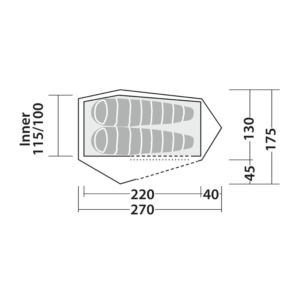 - Vorraum sowie kleiner Stauraum am Fußende (über Reißverschluss im Innenzelt zugänglich)