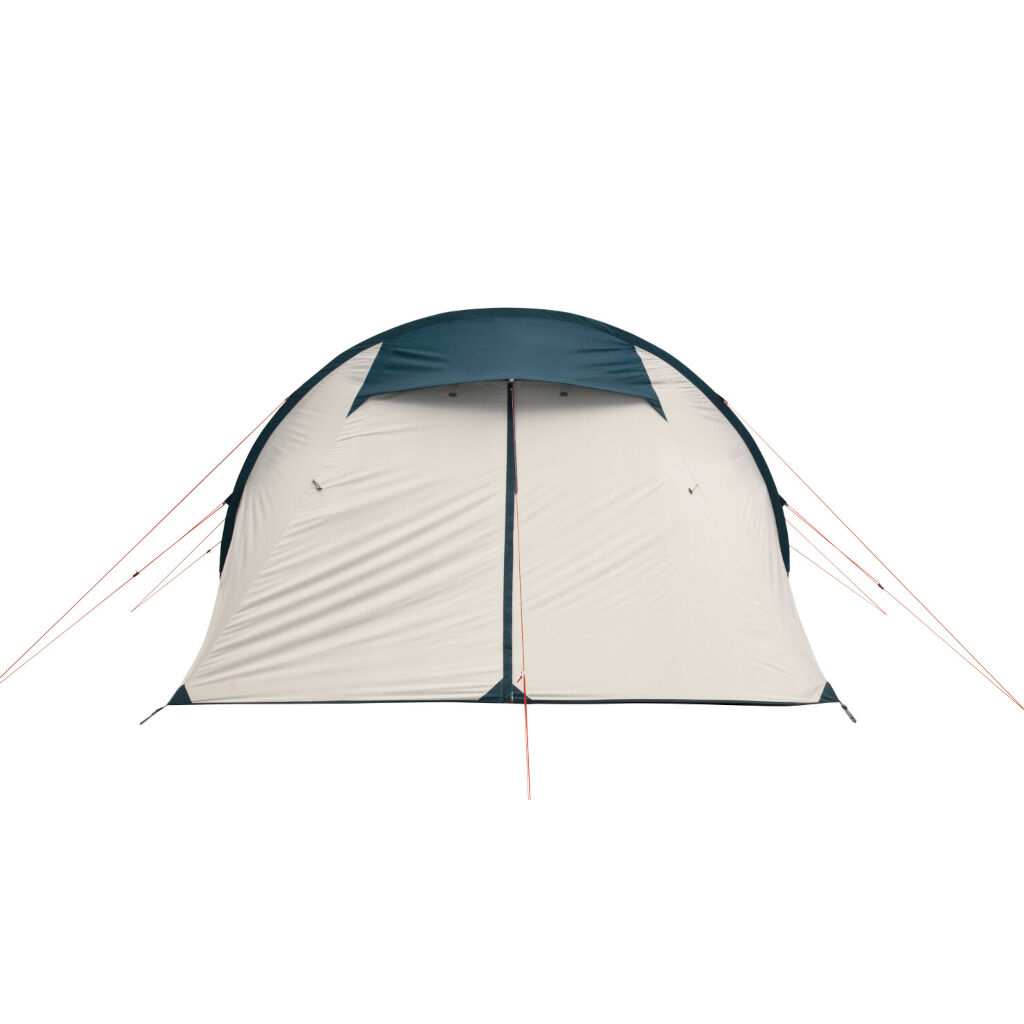 Familienzelt mit Wohnbereich und einer Schlafkabine mit zwei Schlafzimmern. Der geräumige Wohnbereich bietet Platz zum Einrichten und Beisammensein, und die zwei dunklen Sleeptight+ Schlafzimmer schützen vor der Morgensonne und bieten Platz für drei bzw. zwei Personen, sind aber auch für Familien mit 4 Personen geeignet, die größere Matratzen bevorzugen. Ein großer Eingang vorne und ein zusätzlicher Eingang hinten an der Schlafkabine bieten gute Belüftungsmöglichkeiten und ermöglichen es, die Schlafkabine am Morgen zu öffnen, um liegen zu bleiben und die Aussicht zu genießen. Das Zelt hat eine Plane, die regen- und windbeständig ist, sowie farbcodierte Stangen für einen einfachen Aufbau.