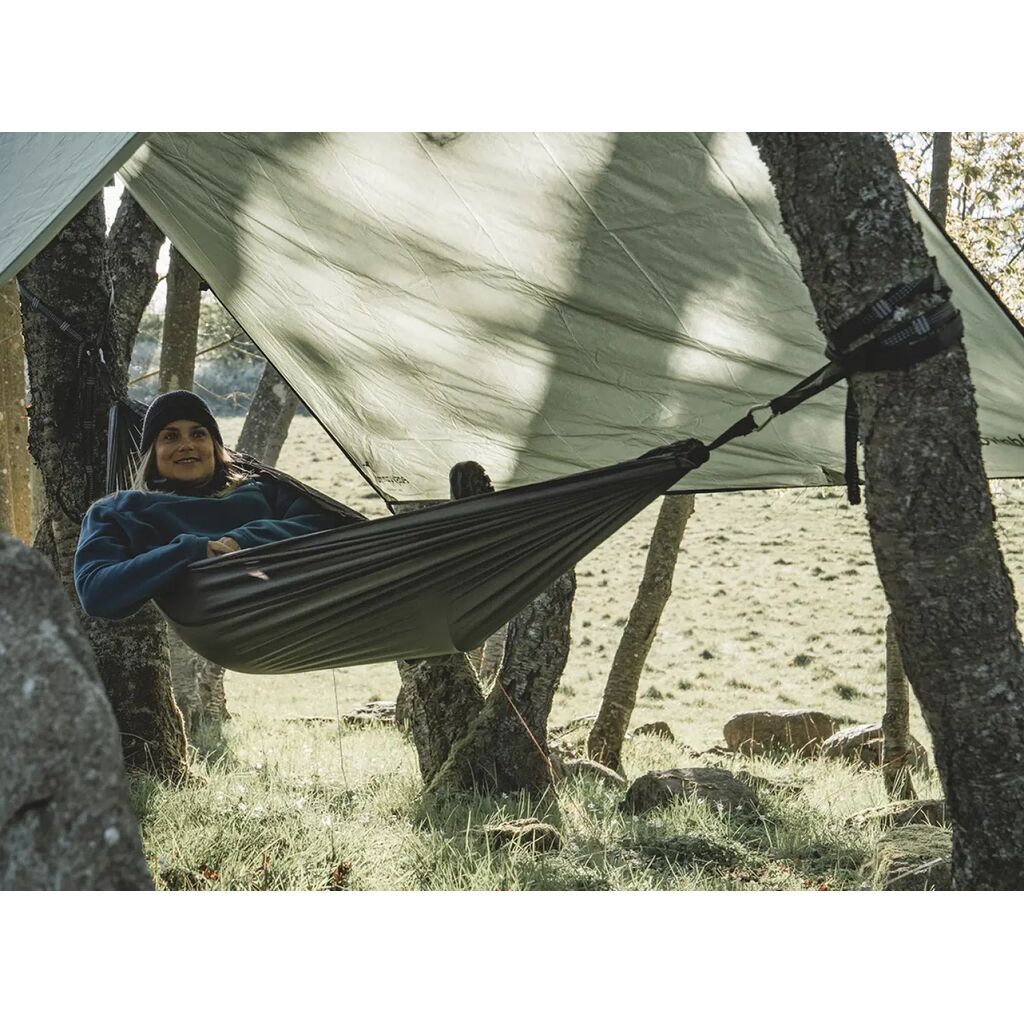 - Regen: Wenn Sie bei jedem Wetter in der Hängematte schlafen möchten, ergänzen Sie sie mit einer Plane, die Sie bei Regen über sich hängen können.