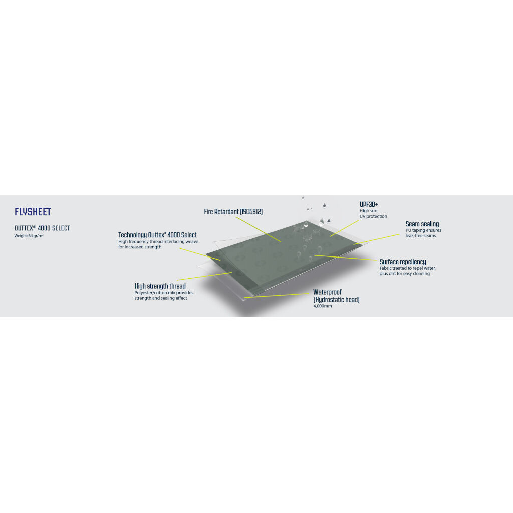 | Zeltstoff | Outtex® 4000 Select (100% polyester taffeta) med tejpade sömmar |