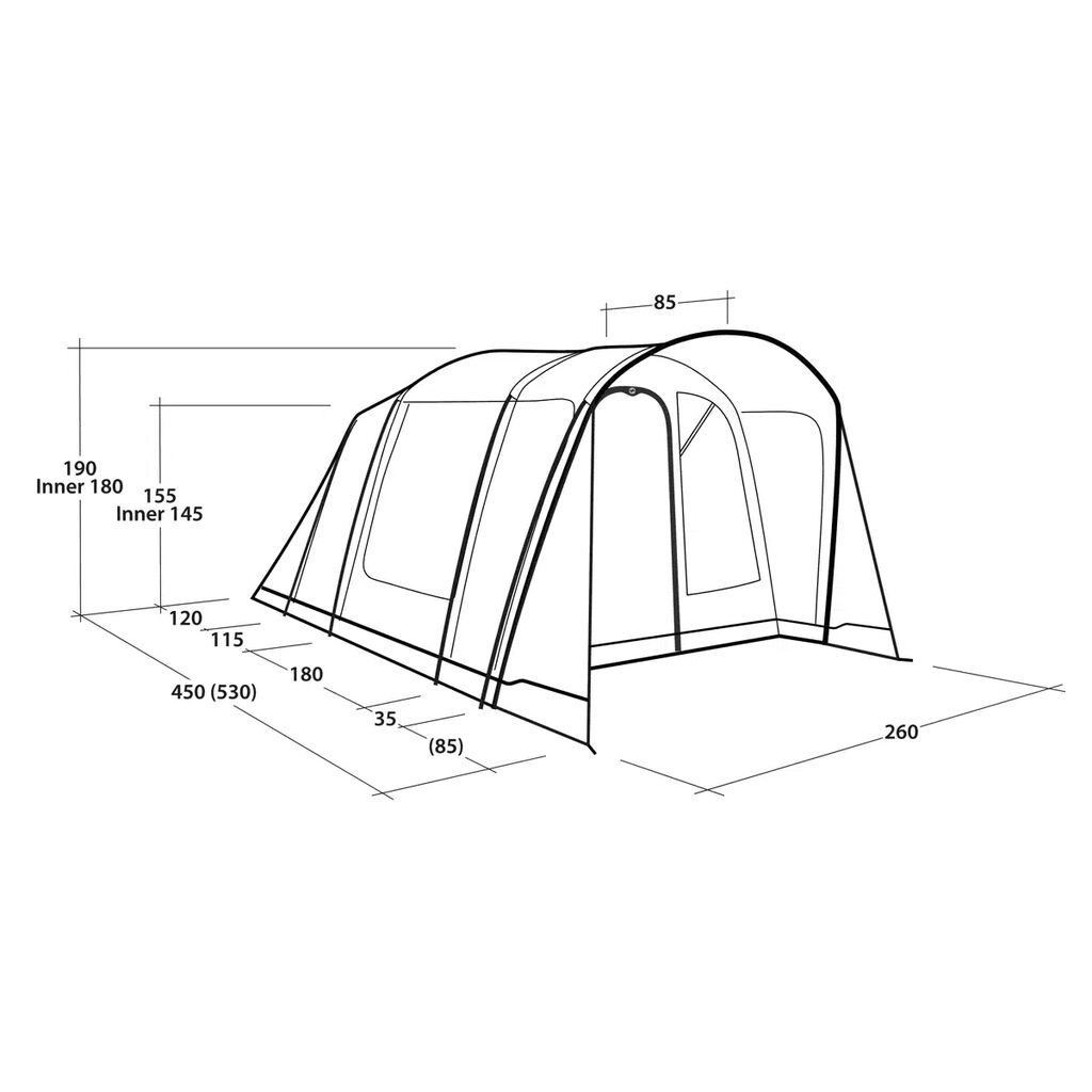 | Innenzelt | Dunkle Seitenwände und Dach mit geringer Lichtdurchlässigkeit, 100% Polyester |