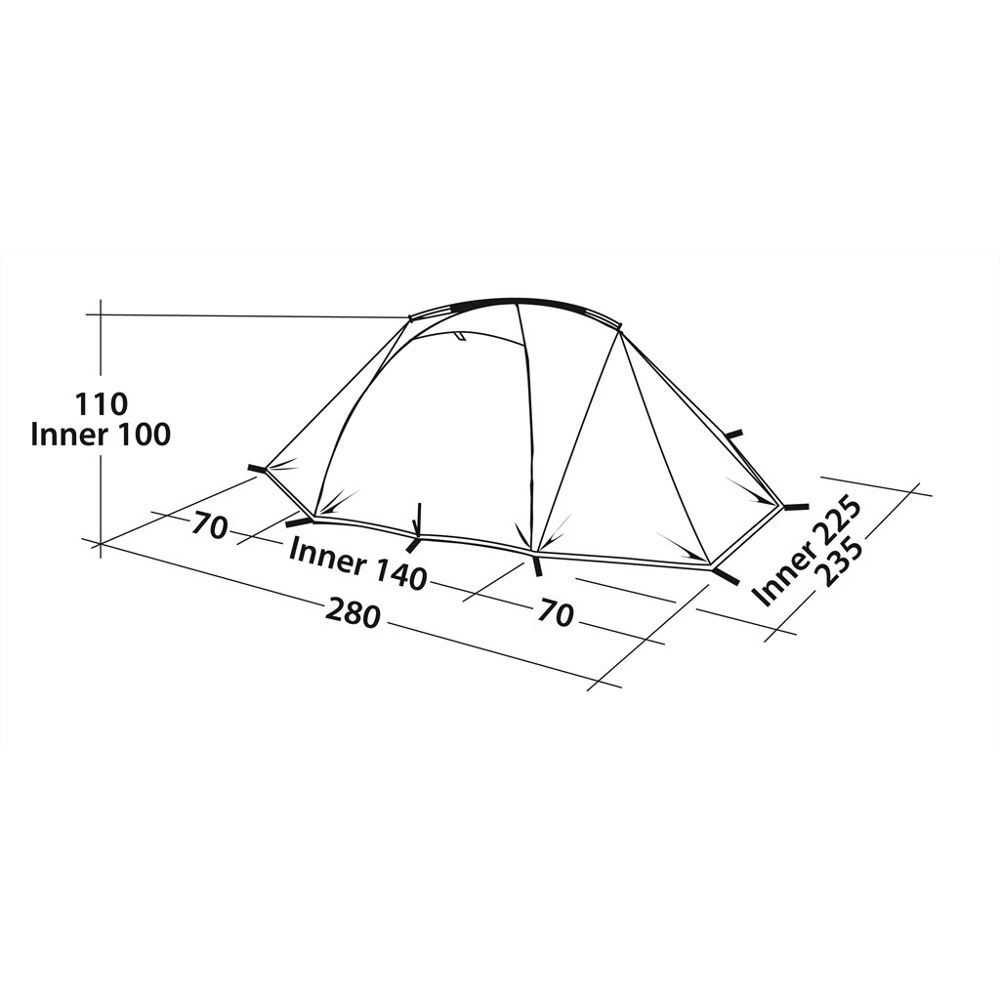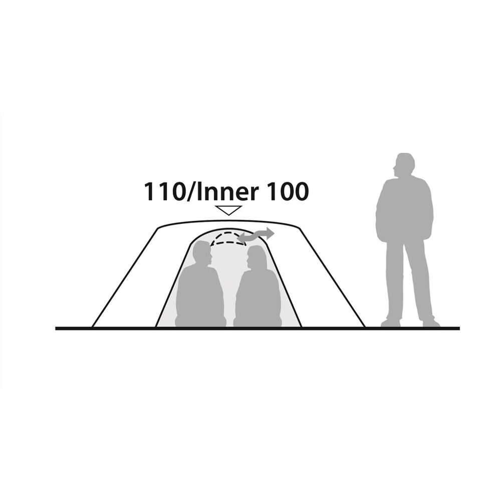 2-Personen freistehendes Kuppelzelt mit Sitzhöhe und doppelten Eingängen/Apsiden. Das Zelt kombiniert Aluminiumstangen mit einem robusten Ripstop-Gewebe mit Verstärkungen an exponierten Stellen, was es sehr widerstandsfähig gegen Wetter und Wind macht. Die großen Öffnungen machen das Zelt leicht zugänglich und einfach zu belüften an warmen Tagen.