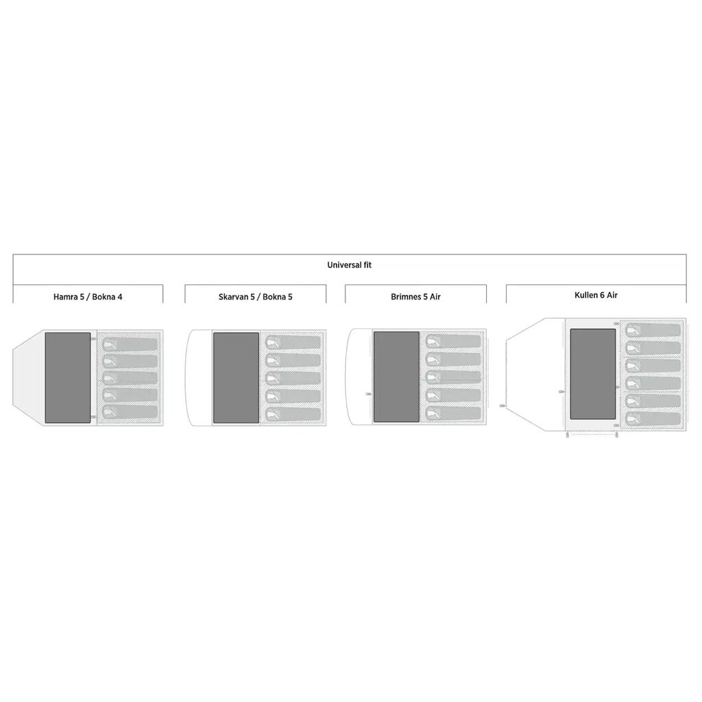 - Maßgeschneidert für die Zelte Hamra 5/Bokna 4, Skarvan 5/Bokna 5, Brimnes 5 Air und Kullen 6 Air