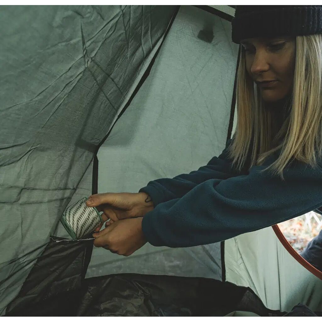 20 Meter lange Zeltleine. Gut, um sie griffbereit zu haben, falls während der Campingreise etwas passiert.