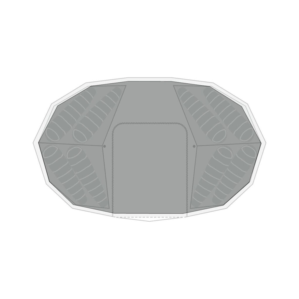 MEHR LESENMaßgeschneiderter Bodenschutz, der unter das Zelt gelegt wird, bevor es aufgestellt wird. Der Bodenschutz hält den Zeltboden sauber und trocken und reduziert den Verschleiß. Wichtig ist, dass der Bodenschutz vollständig vom Zelt bedeckt ist, damit keine Feuchtigkeit zwischen Zelt und Bodenschutz eindringt.