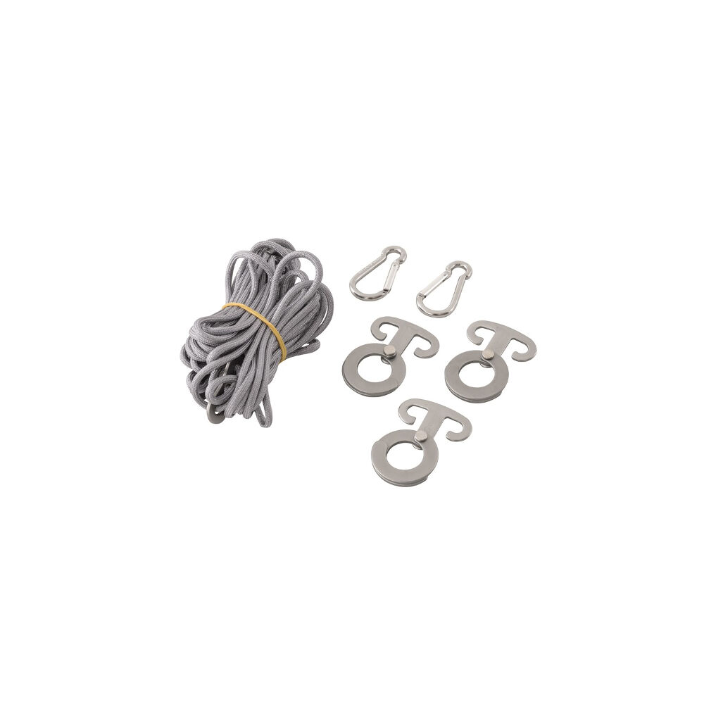 Enthält: 3 Leinen mit Schnalle zur Längenverstellung, 3 Outwell HookTrack Zubehörhaken, 2 kleine Karabinerhaken sowie 1 Aufbewahrungstasche